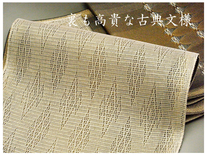 シンプル柄ですが伝統的な組物ですので、お薦めは着物は色無地・訪問着などの礼装物からおしゃれ物まで幅広くご使用になれます。
