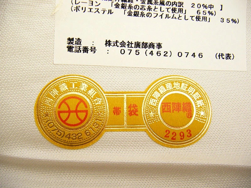 京都は廣部商事の全通袋帯です。